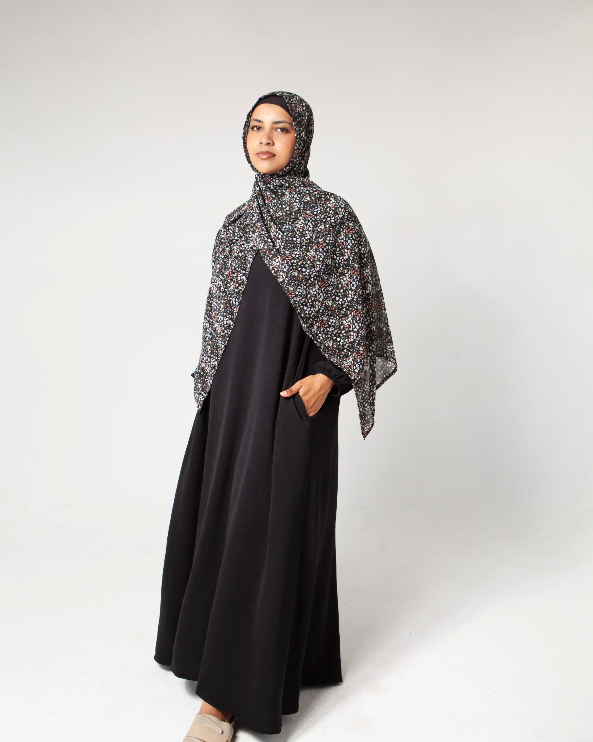 Perfect as an everyday Abaya with flats or sneakers. Team it with heels or sparkly sandals for special occasions. Popular to wear on hajj or umrah as well.