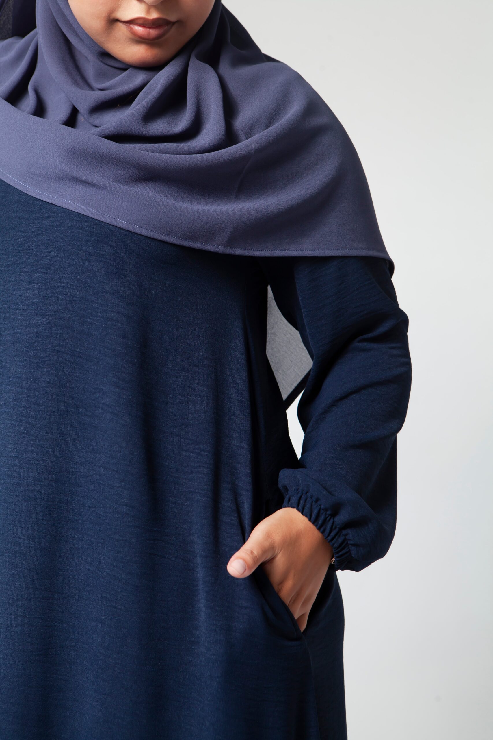 Our AMINA dresses is a flared fit with a round neckline, side pockets and elasticated sleeve cuff.